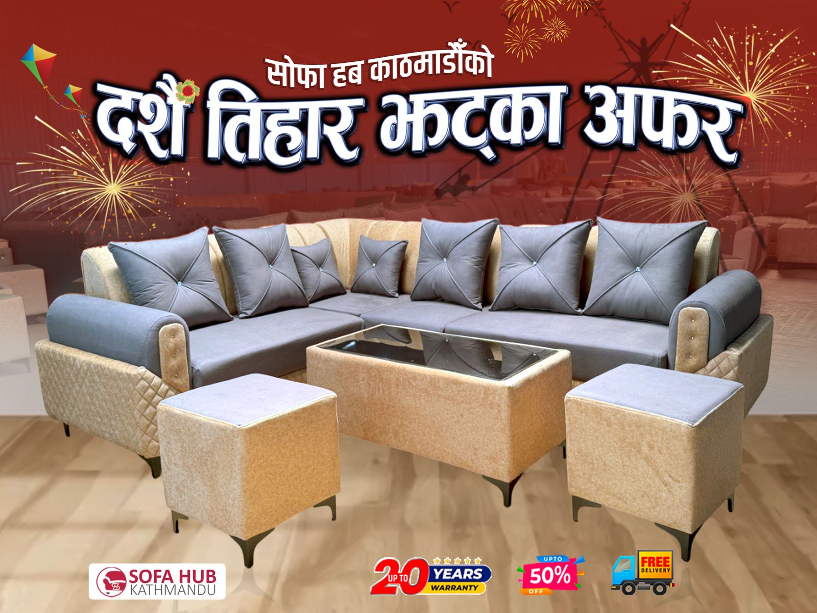 काठमाडौं । दशैँ–तिहारलाई लक्षित गर्दै नेपालकै अग्रणी सोफा तथा गृहसज्जा उत्पादन गर्ने संस्था सोफा हब काठमाडौं ले उपभोक्तालाई आकर्षित गर्ने गरी विशेष योजना सार्वजनिक गरेको छ। कम्पनीले सुरु गरेको ‘दशैँ–तिहार झटका अफर’ मार्फत ग्राहकले विदेश भ्रमणदेखि हात खाली नजाने विभिन्न उपहार पाउने अवसर प्राप्त गर्नेछन्।