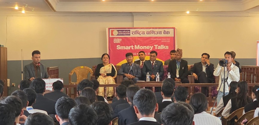 काठमाडौं: राष्ट्रिय वाणिज्य बैंक लिमिटेडले ‘ग्लोबल मनि विक २०२६’ का अवसरमा शुक्रबार ‘स्मार्ट मनि टक्स’ कार्यक्रम सम्पन्न गरेको छ।